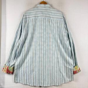Robert Graham Mens 2XLT Blue Floral AOP Flip Cuff Colorful Long Sleeve Button Up