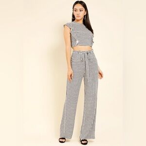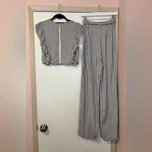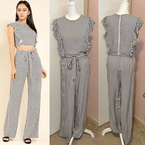 Checkered Ruffle Top & Palazzo Pants Set