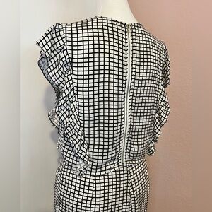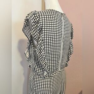 Ruffled top zips up in back