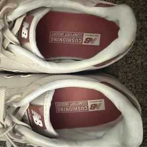 Elevate your look with these New Balance sneakers. Cream base with bold pinkish purple accent. Perfect blend of comfort and style. Brand new never worn, no box, size 10