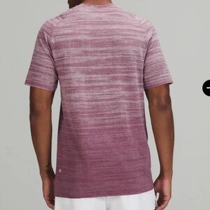 USED Lululemon Metal Vent Tech Short Sleeve Static Storm Stripe Plum/Dusty Rose