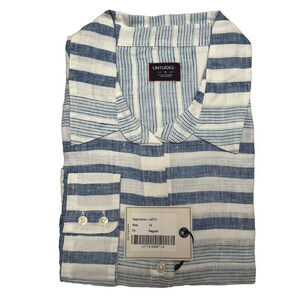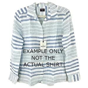 * UNTUCKit Womens Vietti Linen Shirt Blue White Striped Button Up Long Sleeve 14 NWT * Condition: New * Please see photos for details * Approximate Measurements: * Underarm to Underarm: 21-3/4" * Sleeve Shoulder to Cuff: 24" * Length: 26" Disclaimer: Due to photographic lighting and different devices used to view the displayed product, the color you see may vary from the product's actual color.