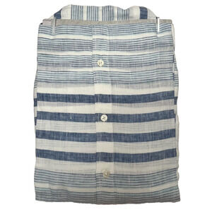 UNTUCKit Womens Vietti Linen Shirt Blue White Striped Button Up L Sleeve 14 NWT