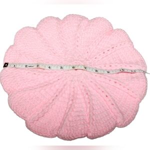 Hand Knit 100% acrylic. Stay cozy and stylish with this pink beret hat. Perfect for adding a pop of color to any outfit.