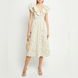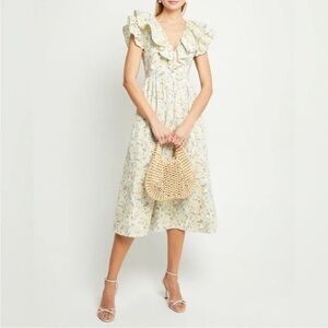 NWOT O.P.T. Kate Floral Ruffle Collar Midi Dress Women’s Small