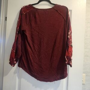 Cato Maroon Blouse with Patterned Sleeves Size S Euc