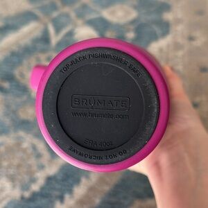 BrüMate tumbler in pink. Features a convenient handle and straw lid. Has some light scratches from use