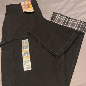 NWT Carhartt Men's Black loose fit canvas flannel lined Cargo Pants