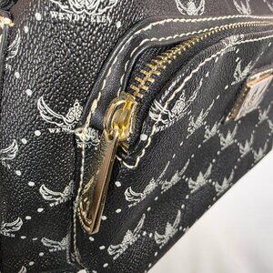 This Wendy Keen backpack is defined by its striking winged-crest monogram, giving it a powerful, "Dark Luxury" aesthetic. The repeating winged shields across the charcoal pebbled leather create a rugged yet refined look that perfectly complements Biker or Goth-inspired styles. Designed for high-capacity utility, it features a dual-security closure system to keep your gear safe while you're on the move.