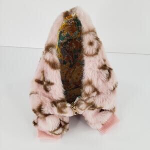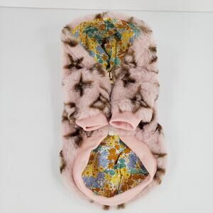 Tinoki Faux Fur XS Dog Cat Jacket Pink Brown Sweater Hoodie Reversible w/ Zipper