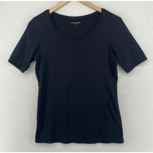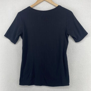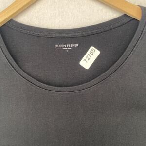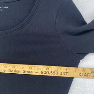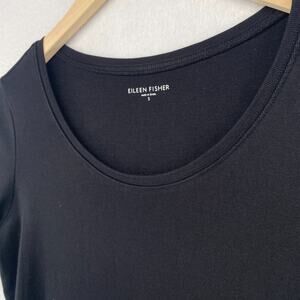 EILEEN FISHER Top S Organic Cotton Ribbed Jersey Scoop Neck Elbow Sleeve Black