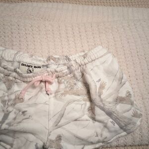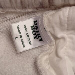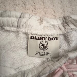Experience comfort and style with Dairy Boy's women's athletic shorts. These white and pink shorts are perfect for any casual activity.