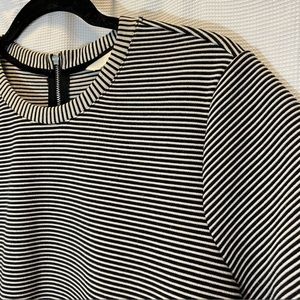 Absolutely love this dress! Stretchy. Detailed striped dress (texture) with back zipper. Stripes are individually defined.