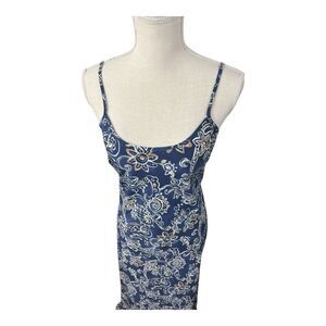 Rampage Blue Floral Sleeveless Shift Maxi Dress Size M Spaghetti Strap Tie-Back