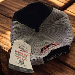 The Dustless Blasting NASCAR Adult Trucker Hat by Checkered Flag Sports is a stylish accessory perfect for travel, casual outings, or workwear. This hat is a piece of promotional merchandise from the company Dustless Blasting,a company that manufactures surface preparation equipment, (including mobile blasting units that use a mixture of water, air, and abrasive to remove coatings and contaminants), related to their partnership with NASCAR. Made from a blend of polyester, nylon, and cotton with a twill fabric type, this black and white hat features a lightweight mesh back design for breathability. The adjustable strap ensures a comfortable fit, making it an ideal choice for the summer, fall, and spring seasons. Show off your love for cars with this hat that is both practical and fashionable for any man's wardrobe.