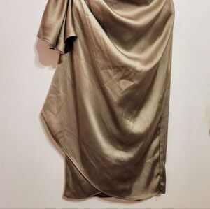 Dolce Viva Collection satin sleeveless draped wrap evening dress in green, size Medium/34.