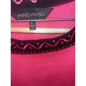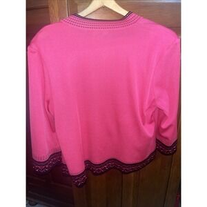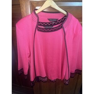 Ming Wang Large Pink Black Open Front 100% Filament Cardigan Jacket & Top Set