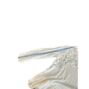 Sandro Paris Dress Basic White Floral Cutout Ethereal Elegance Angelcore. A stunning piece that embodies basic elegance with a touch of ethereal charm. The dress features a beautiful white floral pattern and a unique cutout design, perfect for creating an angelcore-inspired look. Color is white. Picture 1 shows the best color and pattern of the item. Size: 1 or Small Material: Cotton and Polyester Measurement: Pit to Pit: 18 inches Arm Length: 21 inches Length: 33 inches