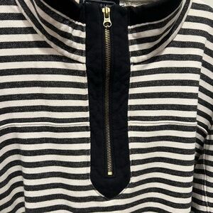 Women’s Duffield Lane Black & White Striped 1/4 Zip Pullover Sz 2XL 100% Cotton
