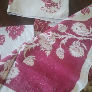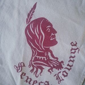 This set of 4 vintage 70's Seneca Lounge gray & maroon dinner napkins features a thistle pattern & Native American on square linen napkins measuring approximately 19" x 19" each. These American-made napkins from the 1970s are perfect for all occasions and are original in their design. With a retro theme and period style, these collectible vintage linens add a touch of nostalgia to any table setting. All 4 are clean with no stains or holes. From Upstate New York, Seneca Lake region. Only set available.