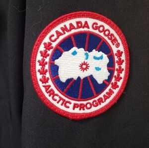 Classic black jacket featuring Canada Goose Arctic Program logo. Ideal for winter wear.