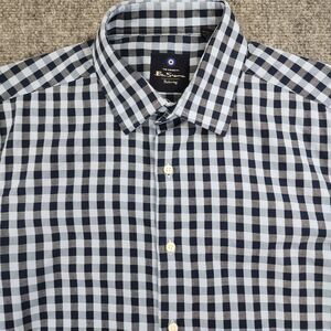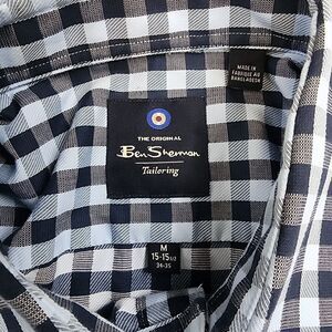 Ben Sherman Shirt Mens 15 15.5 Blue Gingham Plaid Long Sleeve Casual Button Up