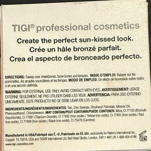 Achieve a radiant glow with TIGI's bronzer. This tan shade provides a natural, sun-kissed look. Ideal for enhancing your complexion.