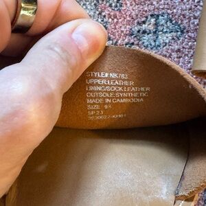 The Boardwalk Post Slide Sandal in the Desert Camel color and leather material. Size 9.5. Lightly worn. Great condition.