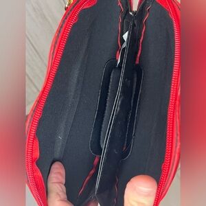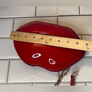 Make a bold statement with this vibrant red lip-shaped bag. Perfect for adding a pop of color to any outfit.