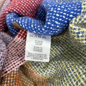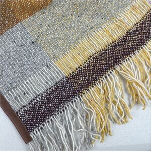 Stylish multicolor shawl with fringe details. Perfect for layering.