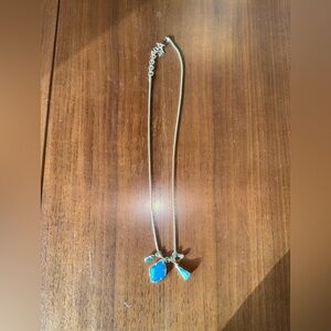 Kendra Scott Hailey necklace. Marine Kyocera opal, tassel, aqua howlite charms.