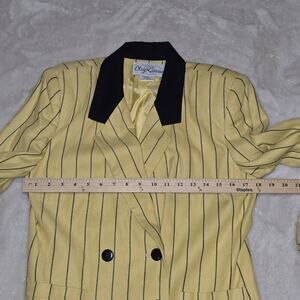 Vintage Oleg Cassini Yellow Pinstripe Blazer Size 10 Double Breasted 80s 90s