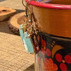 Mint Green in Gold Tone Setting Teardrop Dangle Earrings
