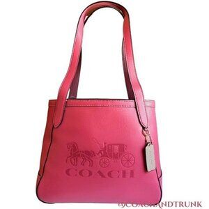 COACH Tote 27 Pebble Leather Poppy Red Embossed Horse and Carriage NWT