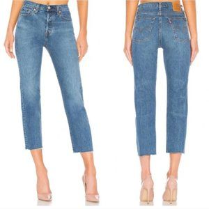 Comfortable trendy Levi's Wedgie Straight Cropped Button Fly High Rise Jeans Med Wash Blue Denim 25 - spring summer fall winter denim boho raw hem Y2K millennial festival concert picnic bbq pool vacation date party everyday school college