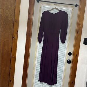 Farm Rio Piping Cutout Balloon Sleeve Dress in purple/burgundy.