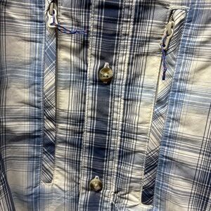 Stylish plaid design with button-down front. Ideal for everyday wear.