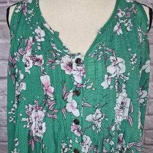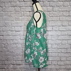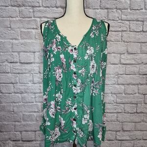Torrid Top Green White Pink Floral Sleeveless Button Front Vneck Size Torrid L