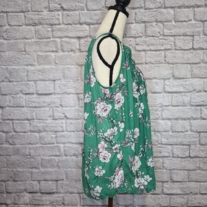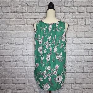 Torrid green, white and pink floral, sleeveless top with pleated detail on front and back in great preloved condition. It is a Torrid size 0 which is equivalent to a US Size L.