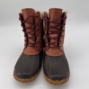 Tommy Hilfiger Women's TW Russel Duck Boots Fur Lined Leather Brown 6 Snow Rain