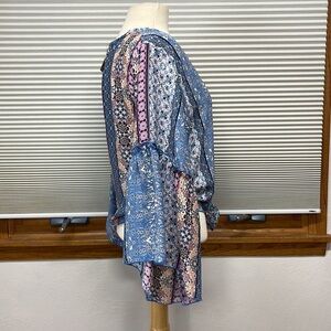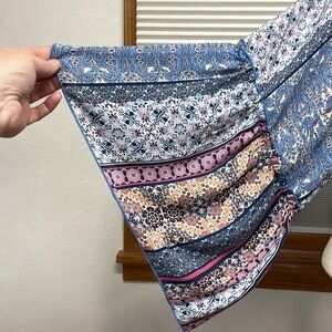 Lavender Fields NWT Blue Boho Print Bell Sleeve Crop Tie Front Top Small