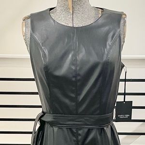 NWT XS XL simply vera Vera Wang Black sleeveless faux leather dress