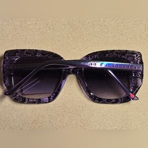 Stylish Betsey Johnson sunglasses featuring a chic purple design. Perfect for adding a touch of elegance to any outfit.