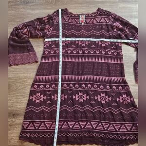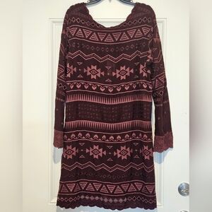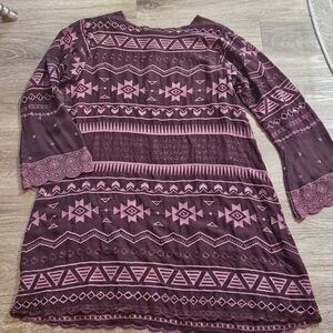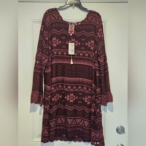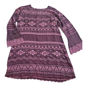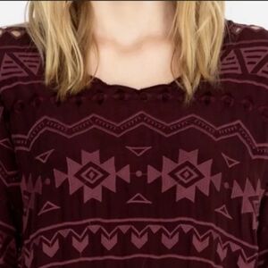 Johnny Was Avery Dress Purple Merlot Burgundy Boho Aztec Eyelet Embroidered
