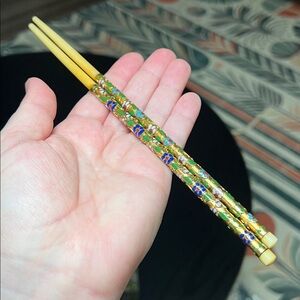 Vintage Chinese Cloisonné Enamel Chopsticks Lot + Bonus Plastic Chopsticks