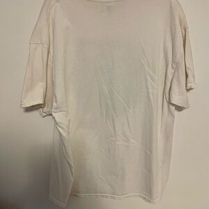 White t-shirt featuring a green beard graphic with clovers and sunglasses. Perfect for casual wear.