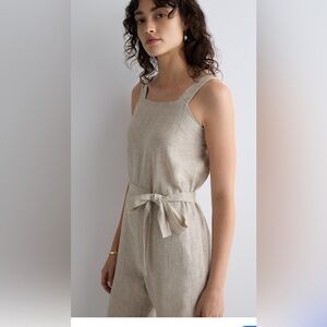 Quince 100% Linen Square Neck Wide Leg Jumpsuit Flax Beige Size M NWT