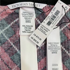 Brand new Victoria’s Secret pajama set. Knit black and red argyle pattern. Notched neck long sleeve top with matching joggers.