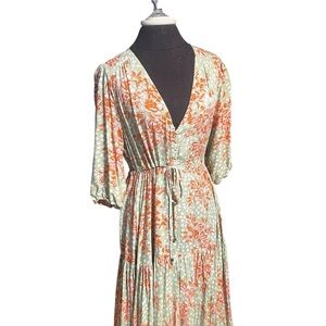 Abel The Label Anthropologie Wild Bloom Floral V-Neck Maxi Dress Small
