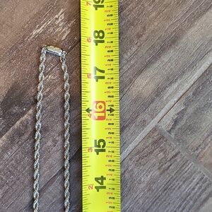 Absolutely Beautiful & Good Pre-Loved Condition Long Shiny Silver Tone Twisted Rope Necklace Decorative Faux Turquoise Pendant, Magnetic Closure